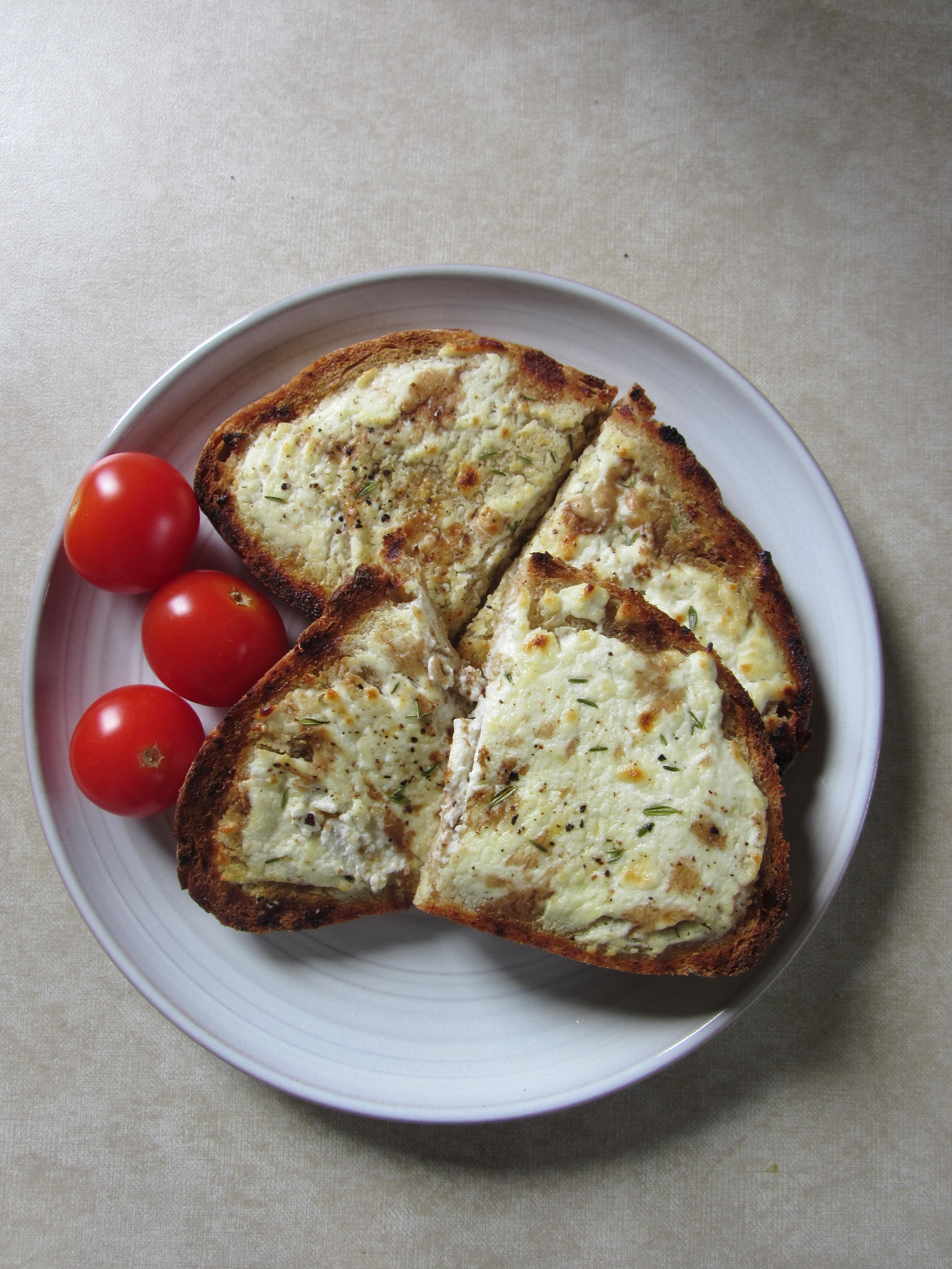 This is my simplified version of Nigel Slater’s recipe. His is glorious, but I rarely spend much time on lunches, so I wanted to create something with the same flavours but without the long cooking times. I also prefer using soft goats’ cheese rather than rounds – it makes for a much lighter meal, and is significantly cheaper too.