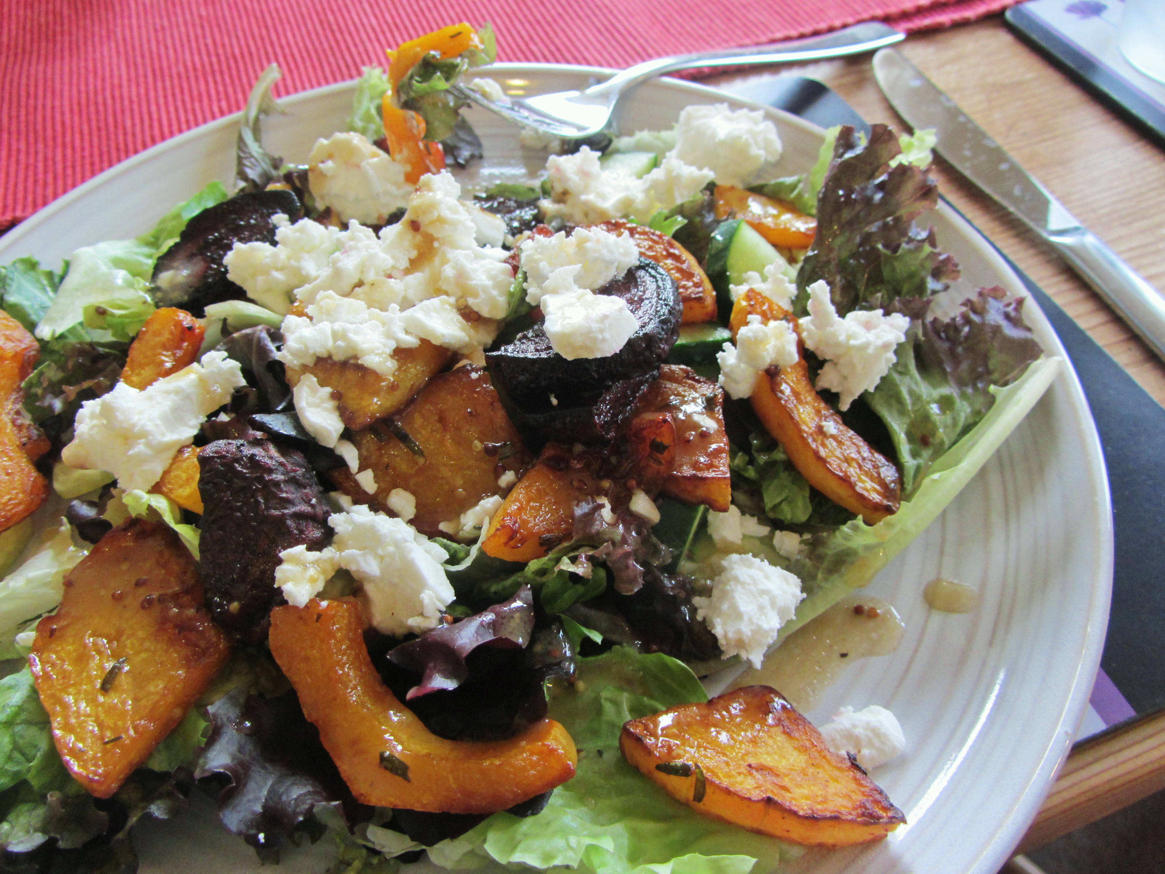 Check this link out for a variation of the goats cheese salad which is not murdered by slimy cucumbers and piping hot squash segments which can only destroy any hope of eating what is supposed to be a cold salad. Youre welcome.
