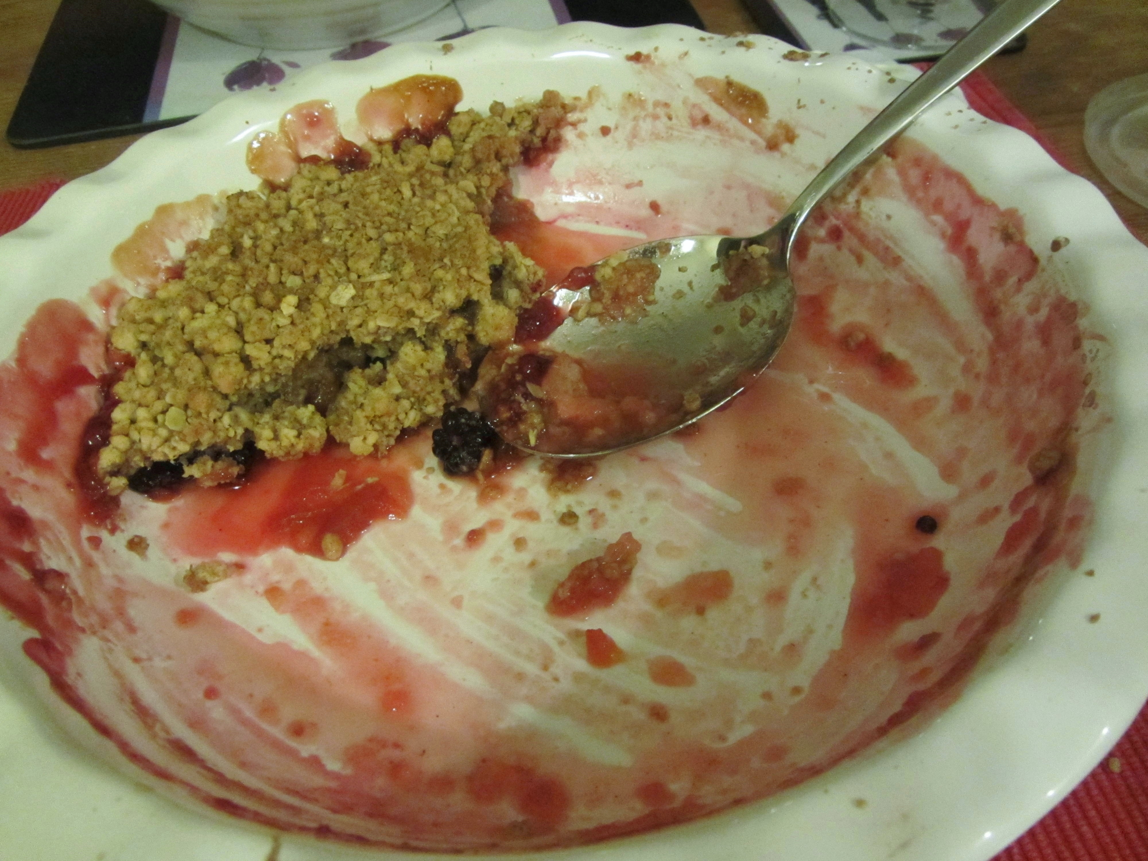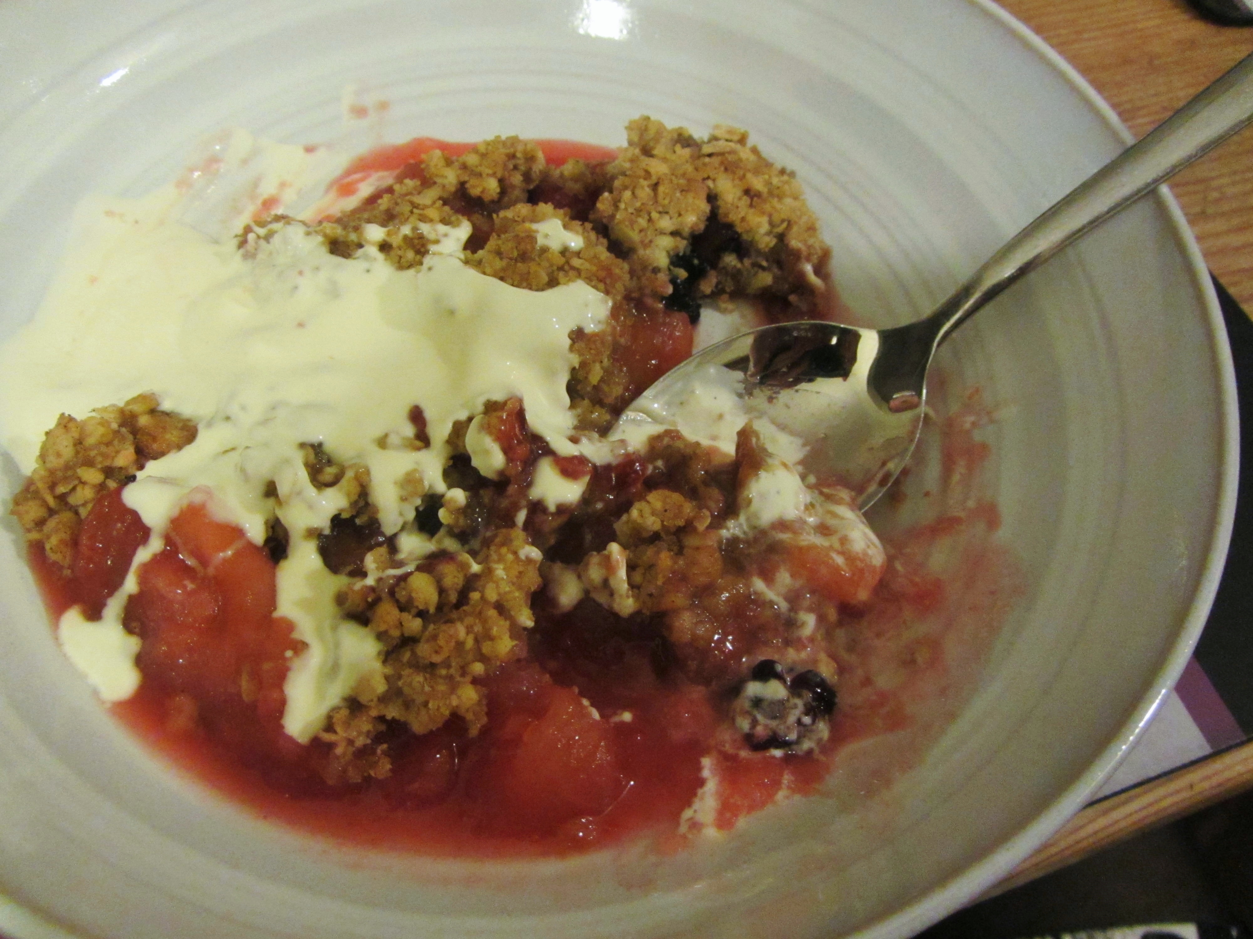This weekend our oven was finally returned to us. Cue much happiness, and rather a lot of baking! This crumble was the first thing I made in it: it’s so perfectly in season, and I’m lucky enough to be able to pick plums off our tree, and gather wild blackberries (which grow a fifteen minute walk away from our house in Cumbria).