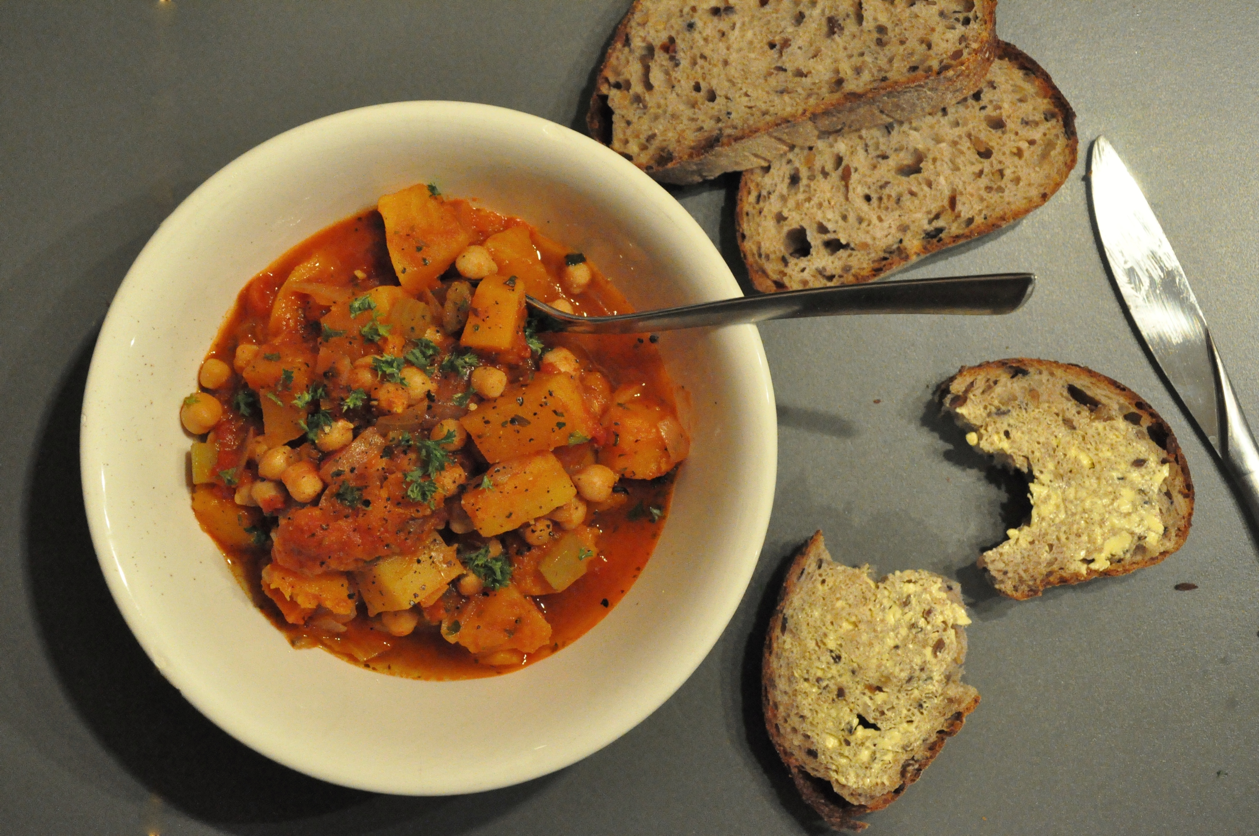 Merry Christmas and a happy new year to all! I had a great one though I ate far too much – I actually had to turn down an offer of cheese on boxing day, which was very upsetting. It’s at this time of year that I really crave vegetables, and simple, warming dishes like this one. The spices ensure it packs a real flavour punch, while everything else gives a great boost to your immune system.