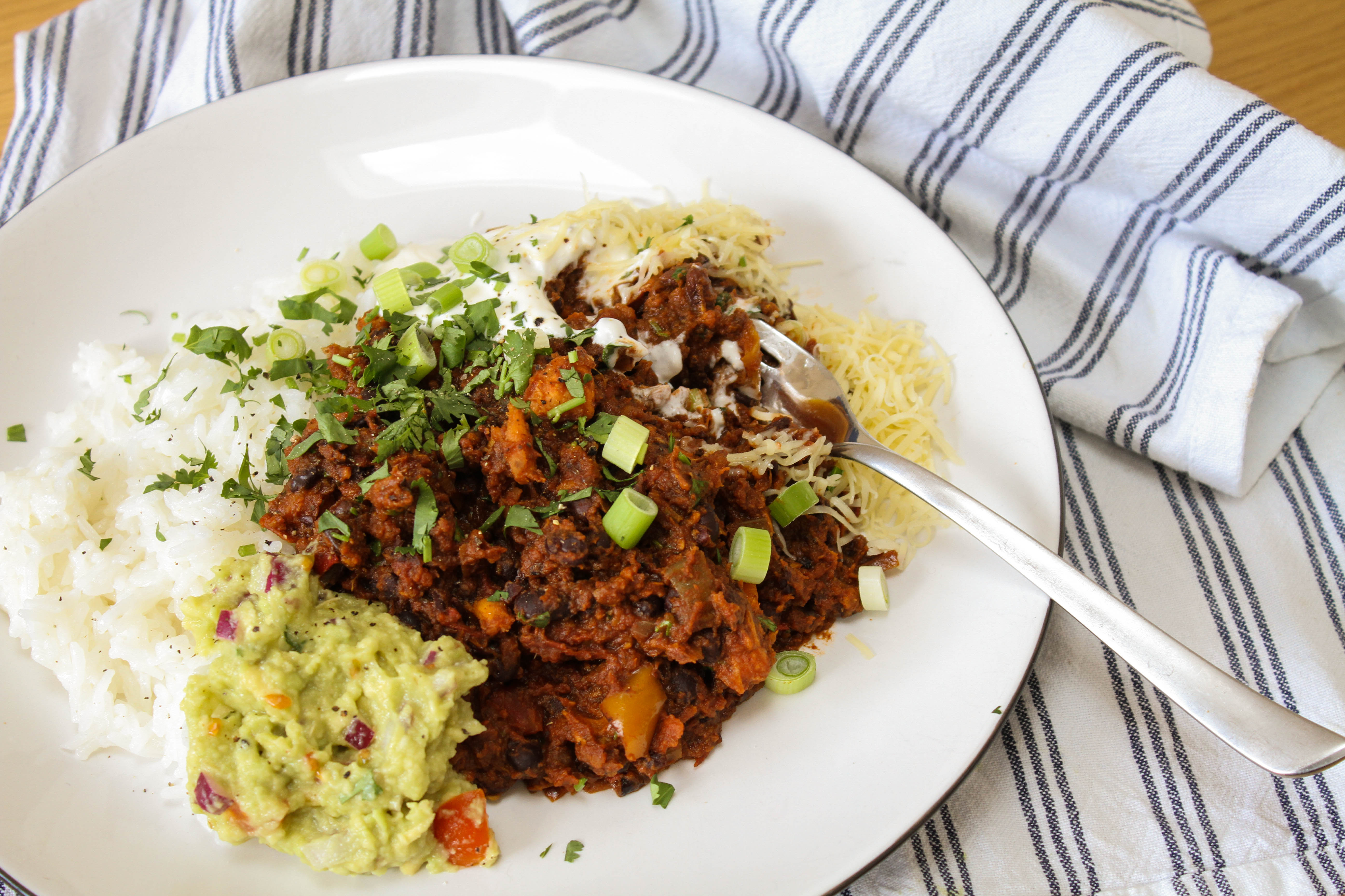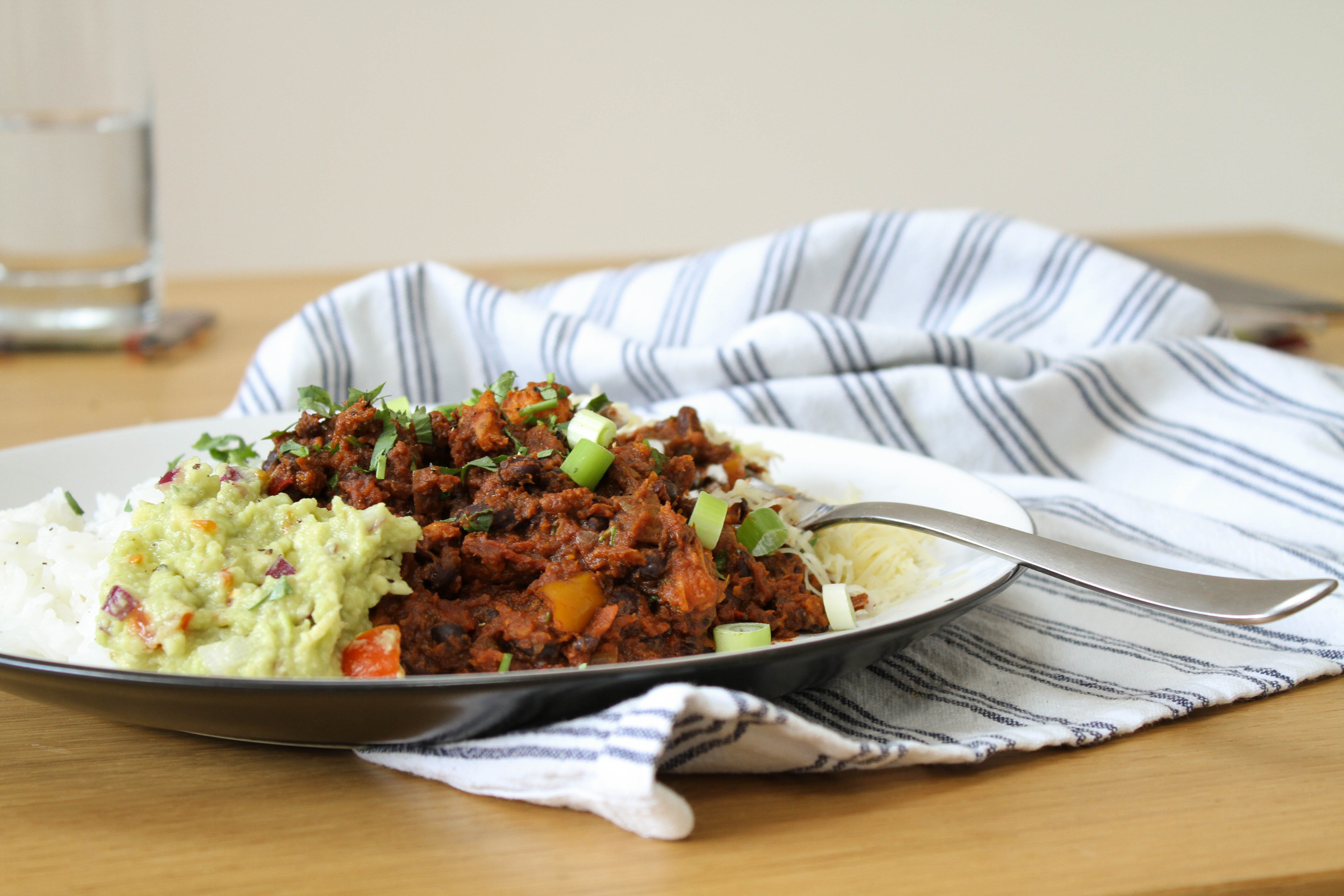 I already had a good chilli recipe (featured on the Sainsbury’s Magazine website a few years ago!) but I wanted something a bit different, that didn’t rely on Quorn, and was more packed with beans and veg. I brainstormed until I came up with this – and was very pleased with the result! I’ll definitely be making it again soon, and fully expect it to become an autumn staple.