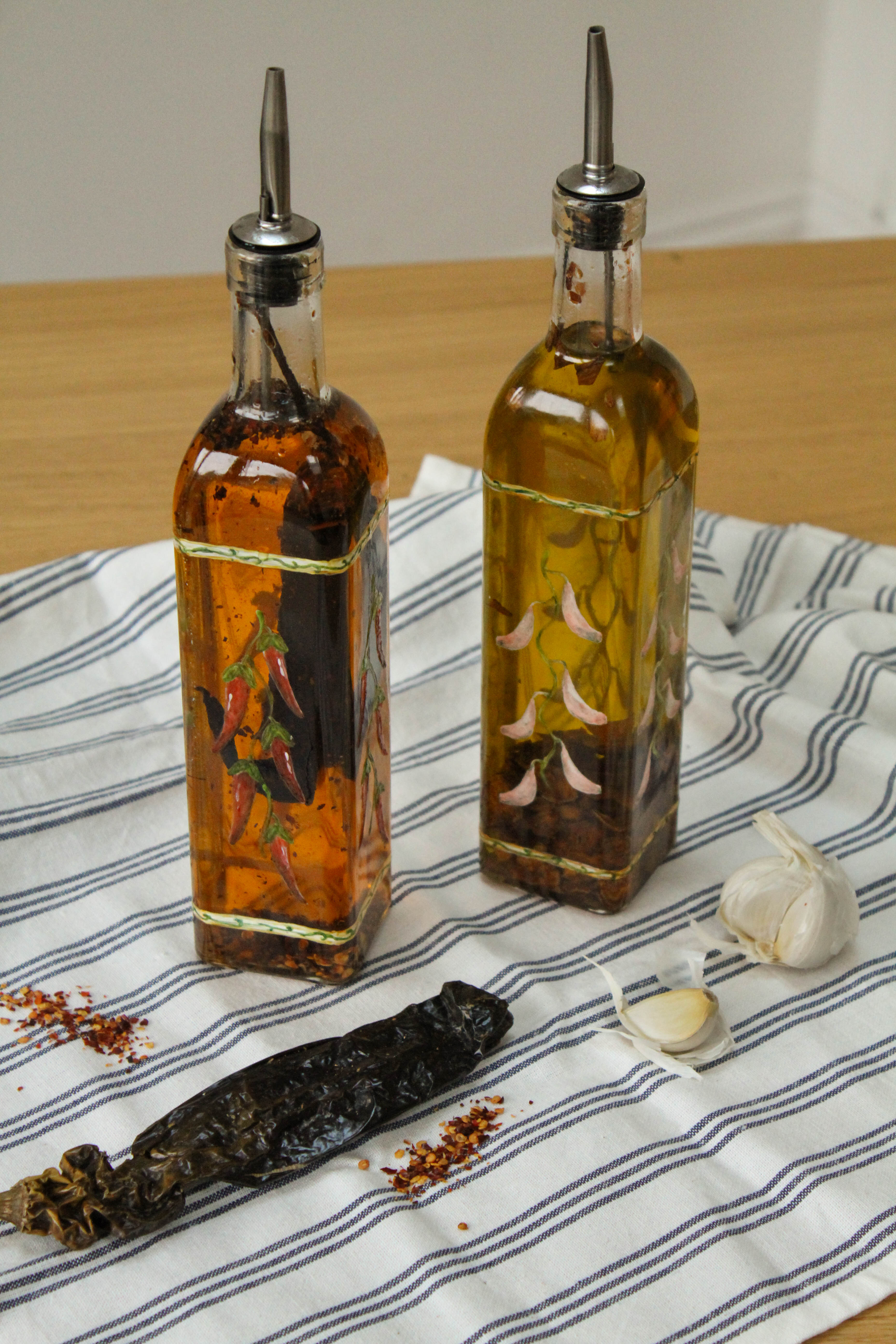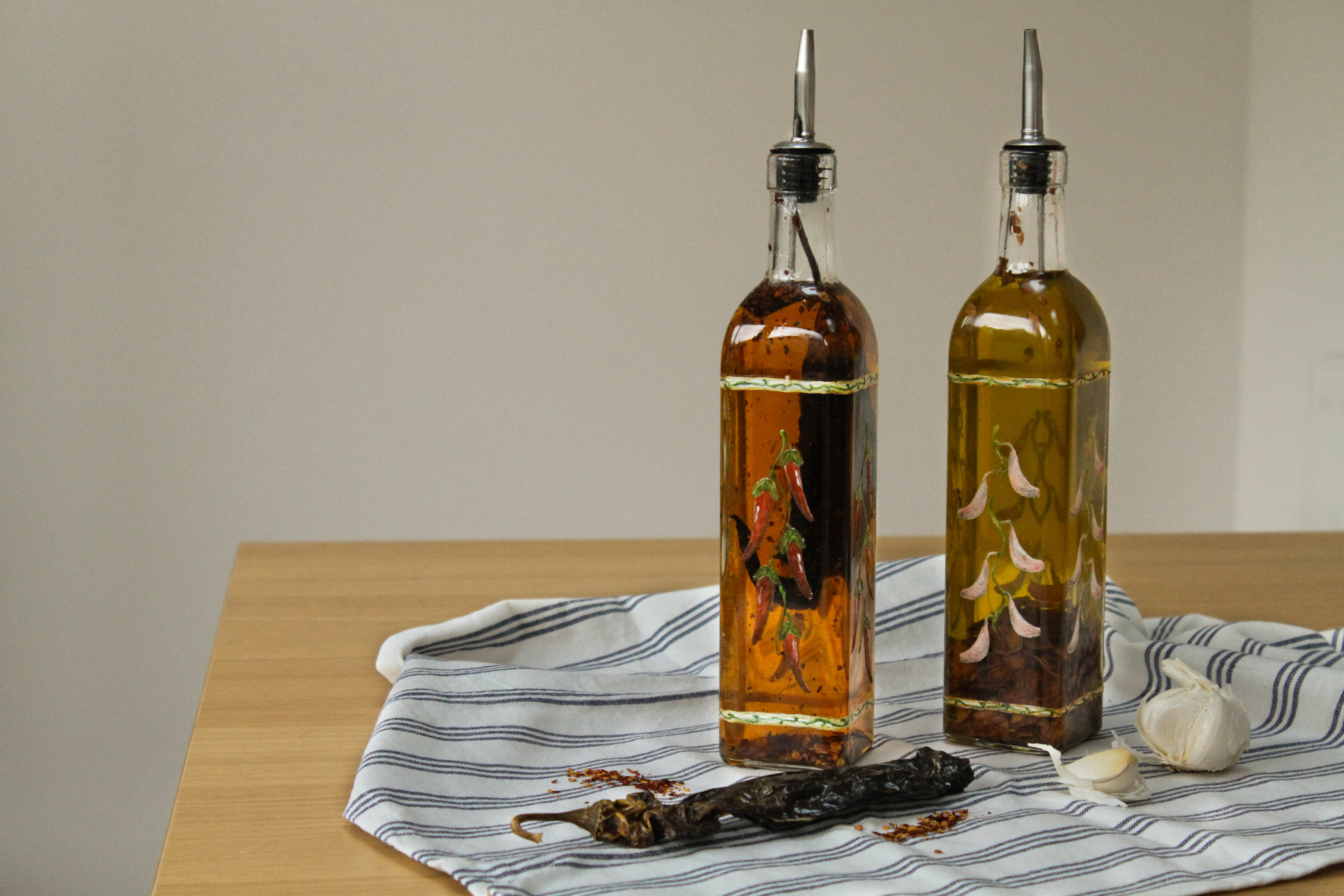 I first made these last Christmas for my Dad, though couldn’t blog them at the time as it would have given away the surprise! So I’m technically publishing these recipes a year late, but it’s definitely been worth the wait. The oils are delicious, and Dad was very pleased with them (they have been topped up more times than I can count, and last week I went round to make a fresh batch!).