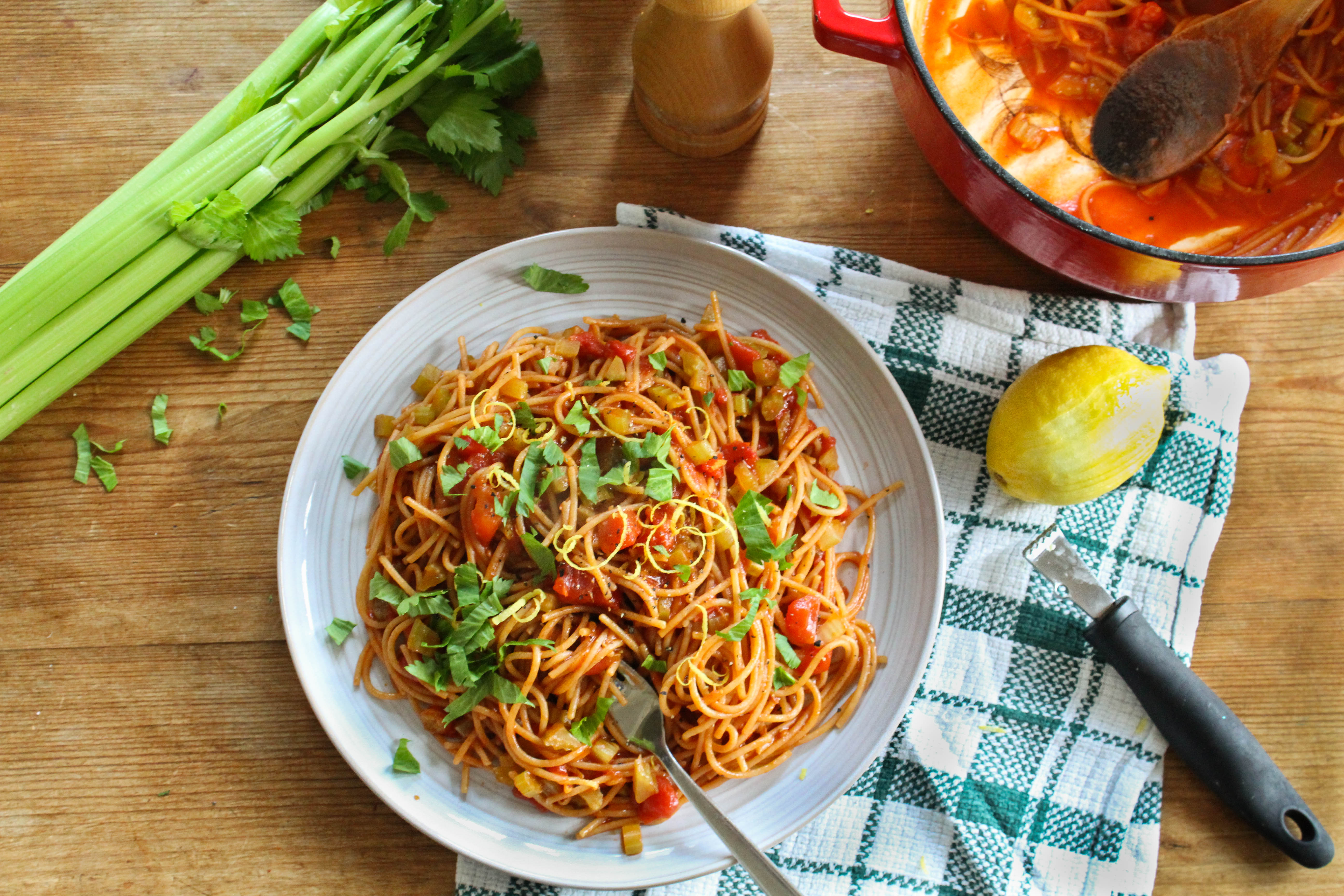 Hold onto your hats folks – this is a special one. For a while now I’ve admired beautiful photographs of one-pot pastas across social media, and was toying with the idea of developing my own. A few days ago the idea for a Bloody Mary-inspired dish hit me (definitely not as the result of a hangover…), and I’ve been fixated with it since!