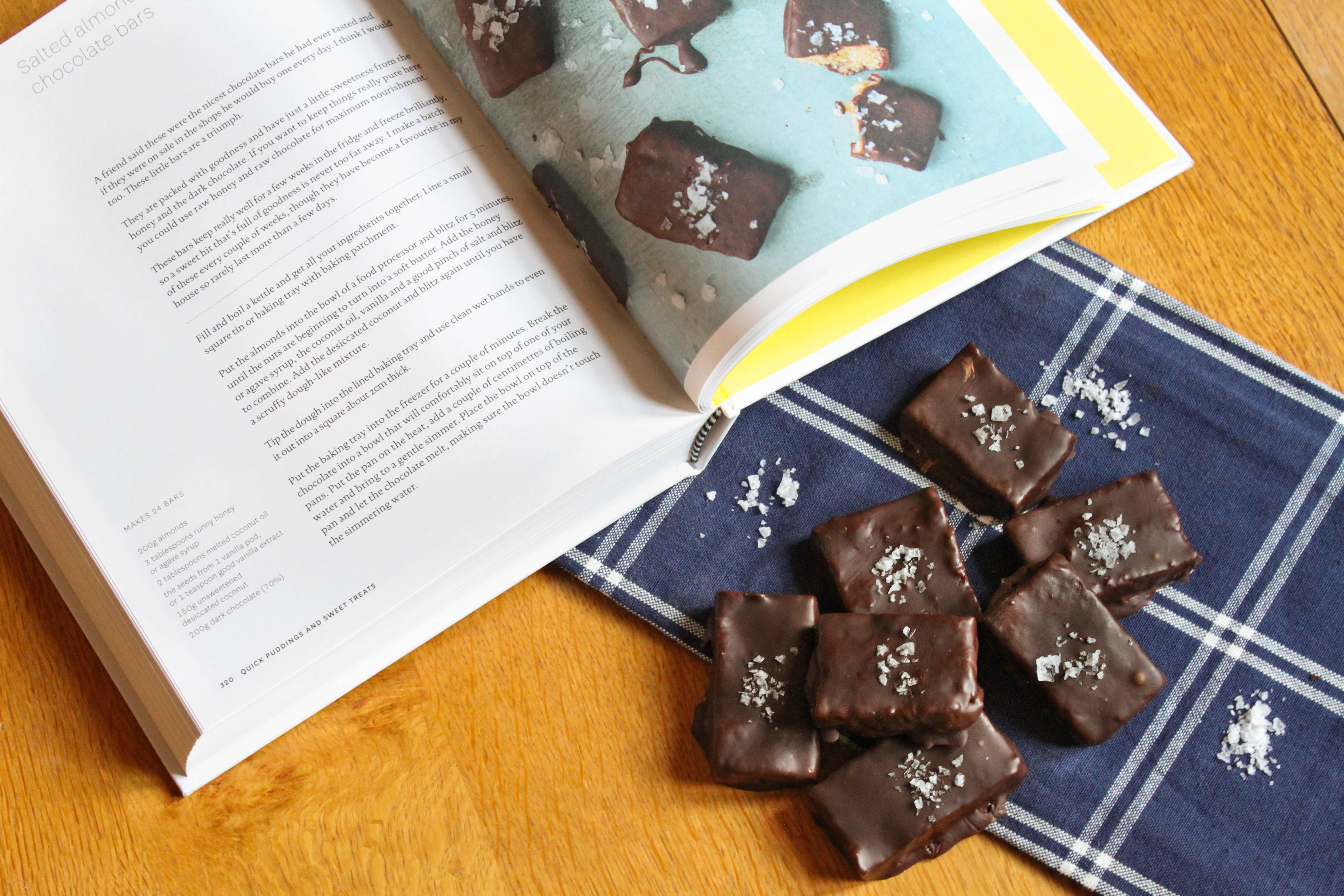 The only criticism I have is in the clarity of the recipe – a definite anomaly for Anna Jones. The first word of the recipe title is ‘salted’, and yet no salt is listed in the ingredients. The method instructs you to add ‘a good pinch of salt’ as you make the filling, but in mine you certainly couldn’t taste it; perhaps my pinch wasn’t big enough. The accompanying photograph also shows a sprinkling of salt flakes topping each bar, which the method neglects to mention. When I made mine I followed suit, and I’m glad I did – the salt gives a beautiful tang and somehow accentuates the sweetness of the chocolate. Despite any salt-related discrepancies on my part, though, I’ll certainly be making these again.