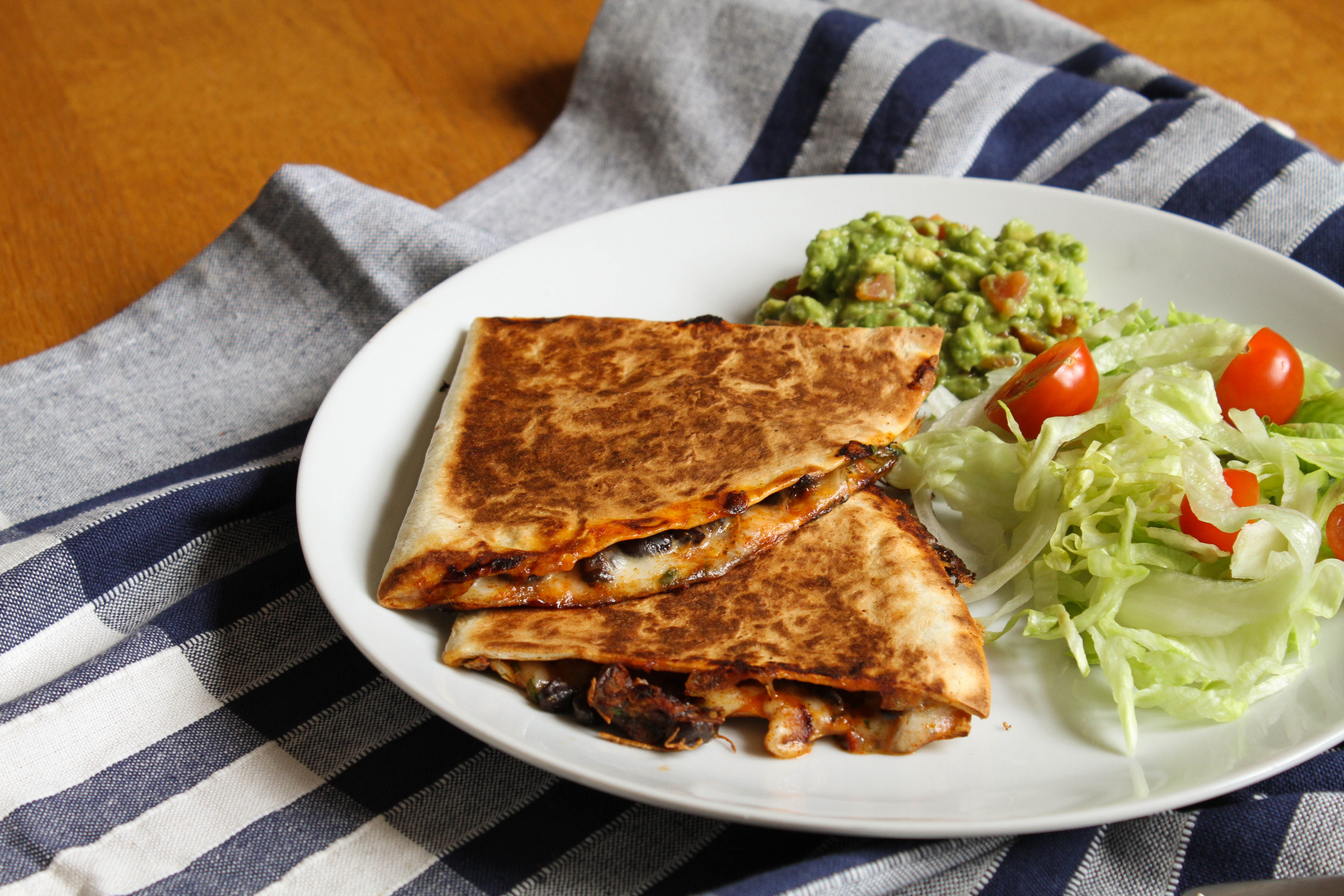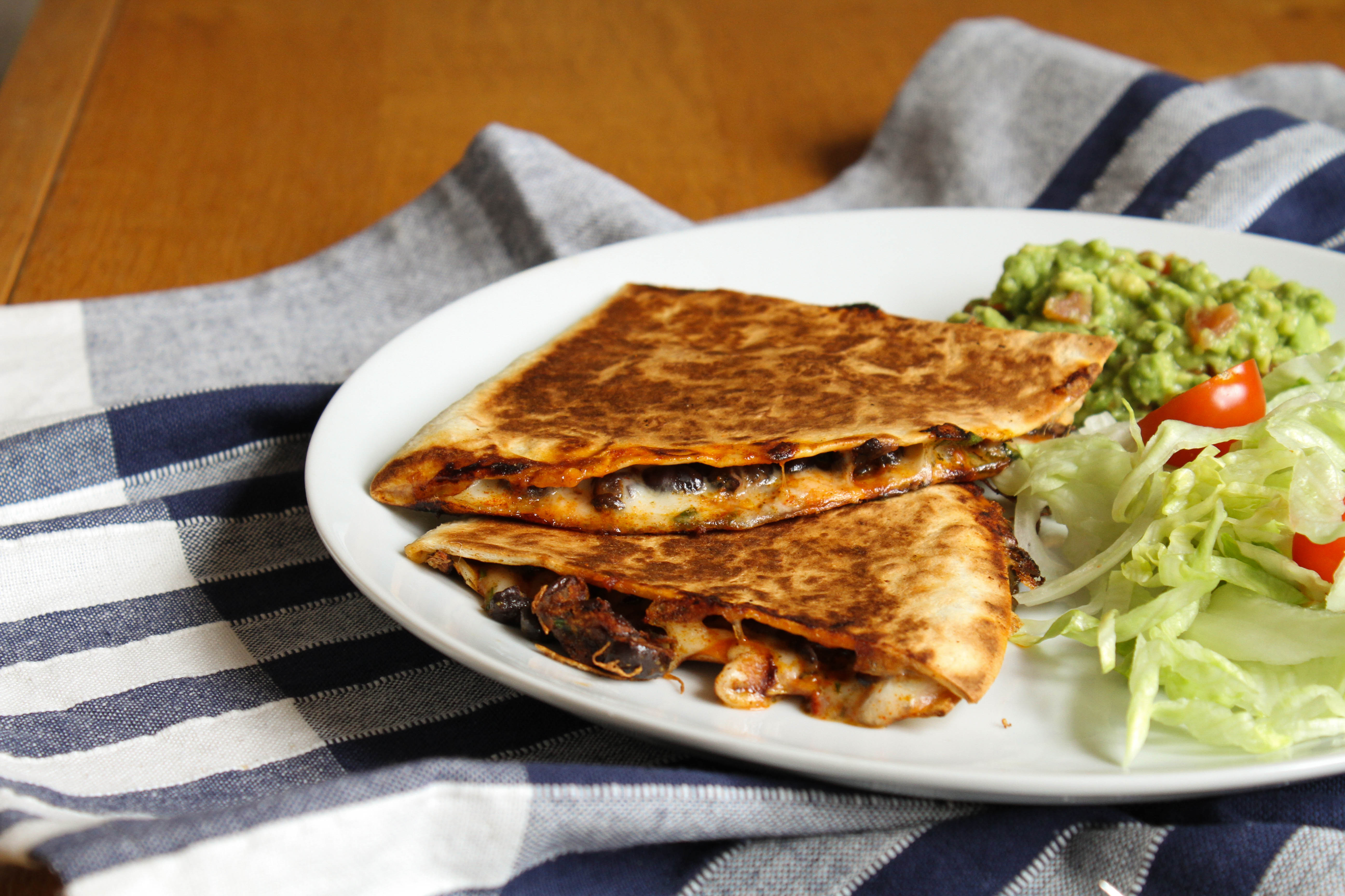 I’m on a huge Mexican kick at the moment. For my sister’s 21st birthday a few weeks ago I made a Mexican-inspired feast with quesadillas, tostadas and taquitos, and I’ve been getting flavour cravings ever since! Quesadillas are fast becoming my go-to lunch: they’re so quick and easy to make, and totally delicious. They’re also really adaptable – you can add in any leftover veg or beans that need using up, and if necessary you can also use gluten-free wraps.