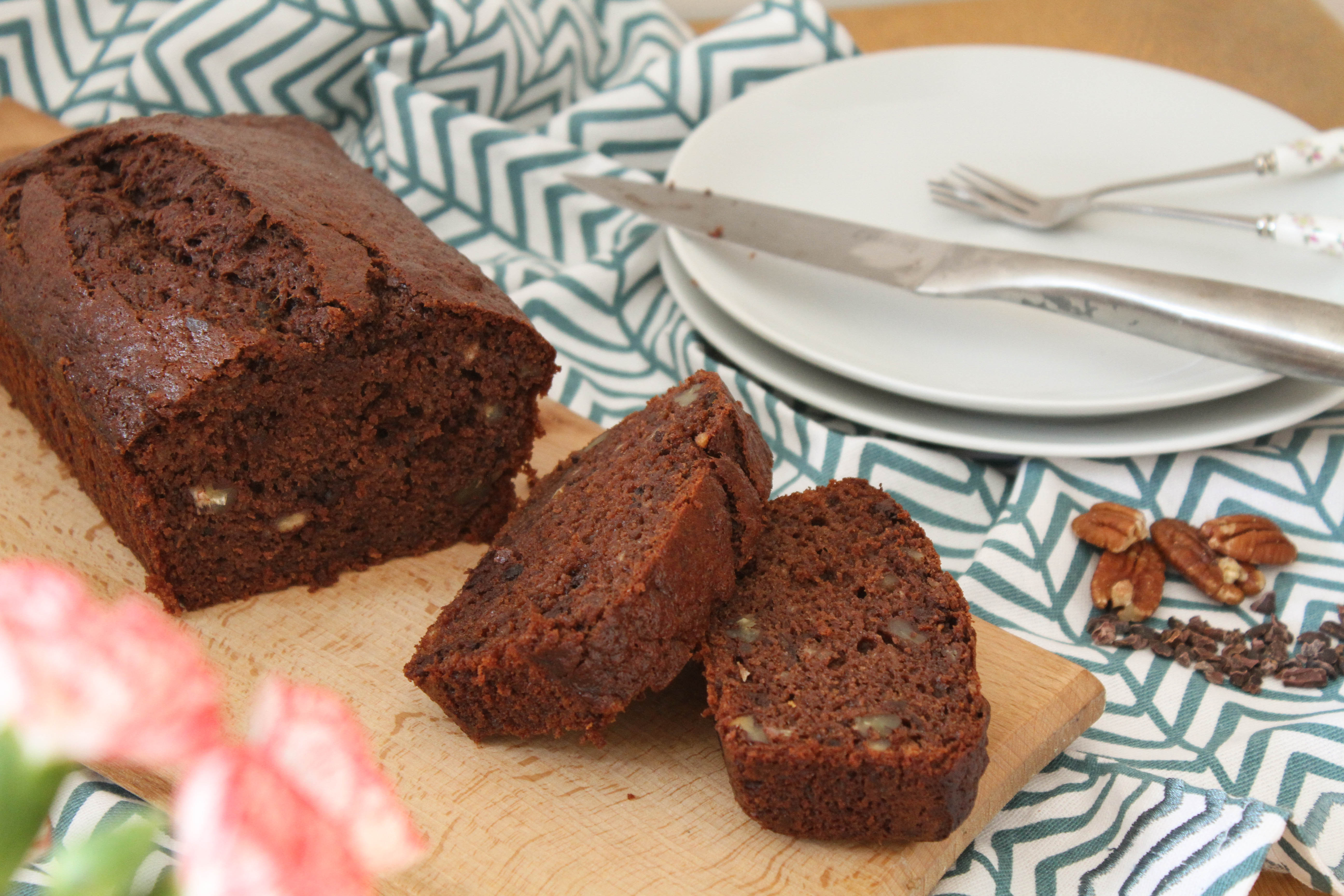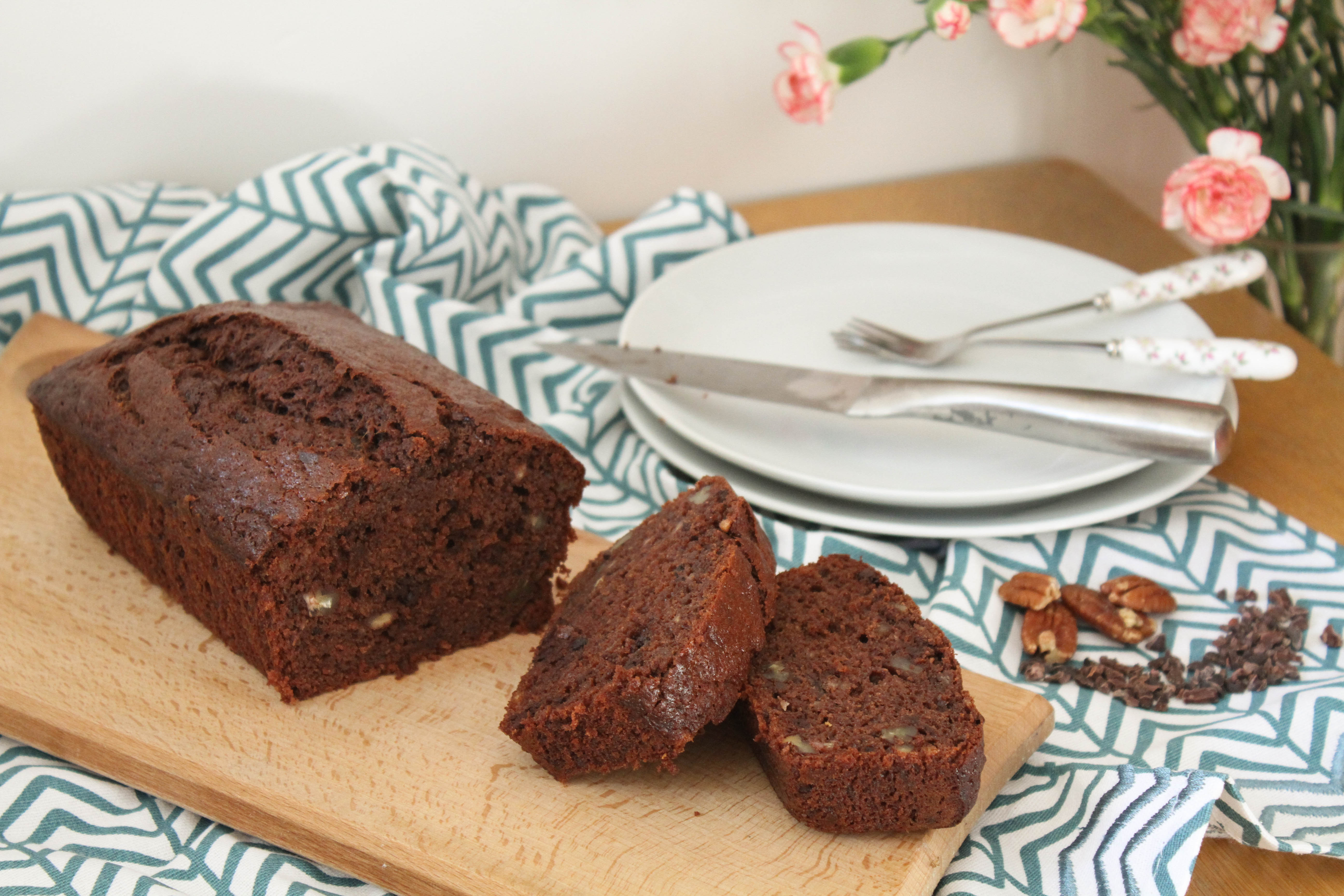 I thought for a while about how to decorate this cake – I considered smothering it in chocolate icing; perhaps sprinkling cacao nibs or crushed pecans on top. I decided against it, though. I wanted something simple – something I could pop into a bag and take to work, but that would still feel like a treat. And it fulfills the brief – it’s rich and dark and unassuming: not overly sweet, and slightly wholesome. There’s a beautiful hint of crunch from the top, that contrasts with the moist, soft crumb of the centre. I love the variety of textures from the pecans, cacao nibs and chocolate, too, that give bites of crunch, bitterness and sweetness. It’s a cake to be enjoyed at any time – after lunch; as a mid-afternoon treat; as a grab-and-go breakfast as you run out the door – whenever you feel like it.
