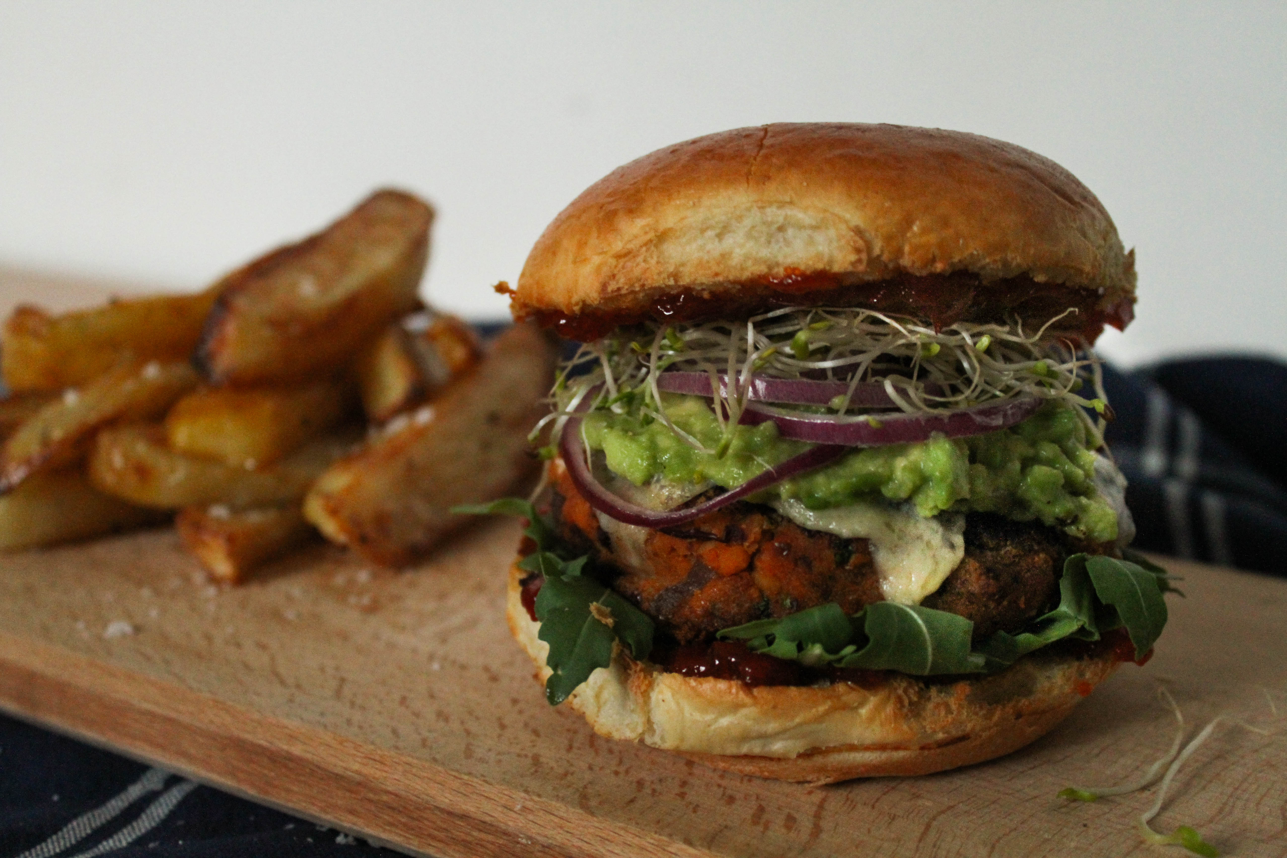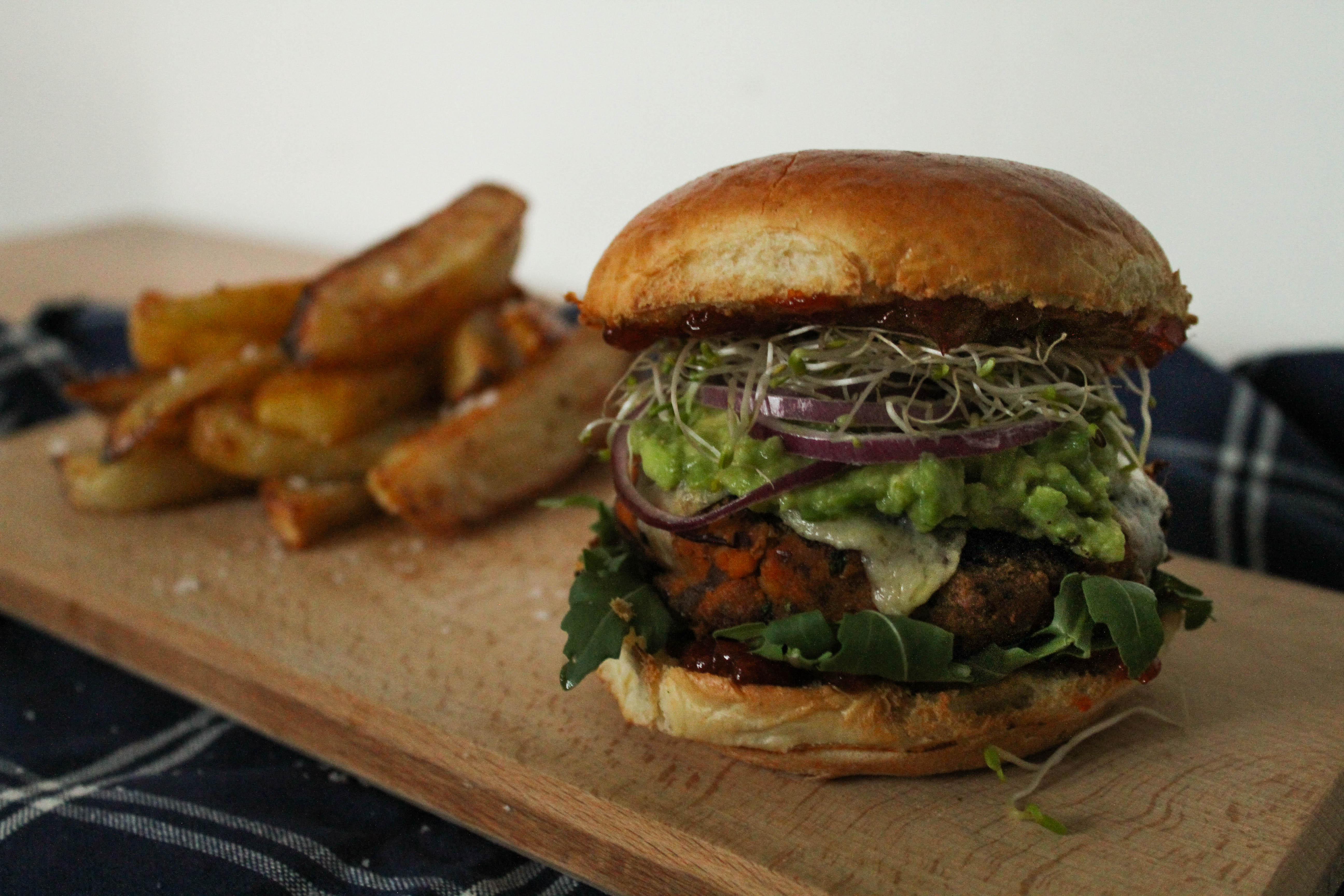 To make these vegan, simply miss out the cheddar when assembling, and replace the brioche burger buns with regular ones. To make them gluten-free, use gluten-free breadcrumbs for the burgers and buns when assembling. These burgers freeze brilliantly, so even if you’re cooking for one you should still make the full amount.