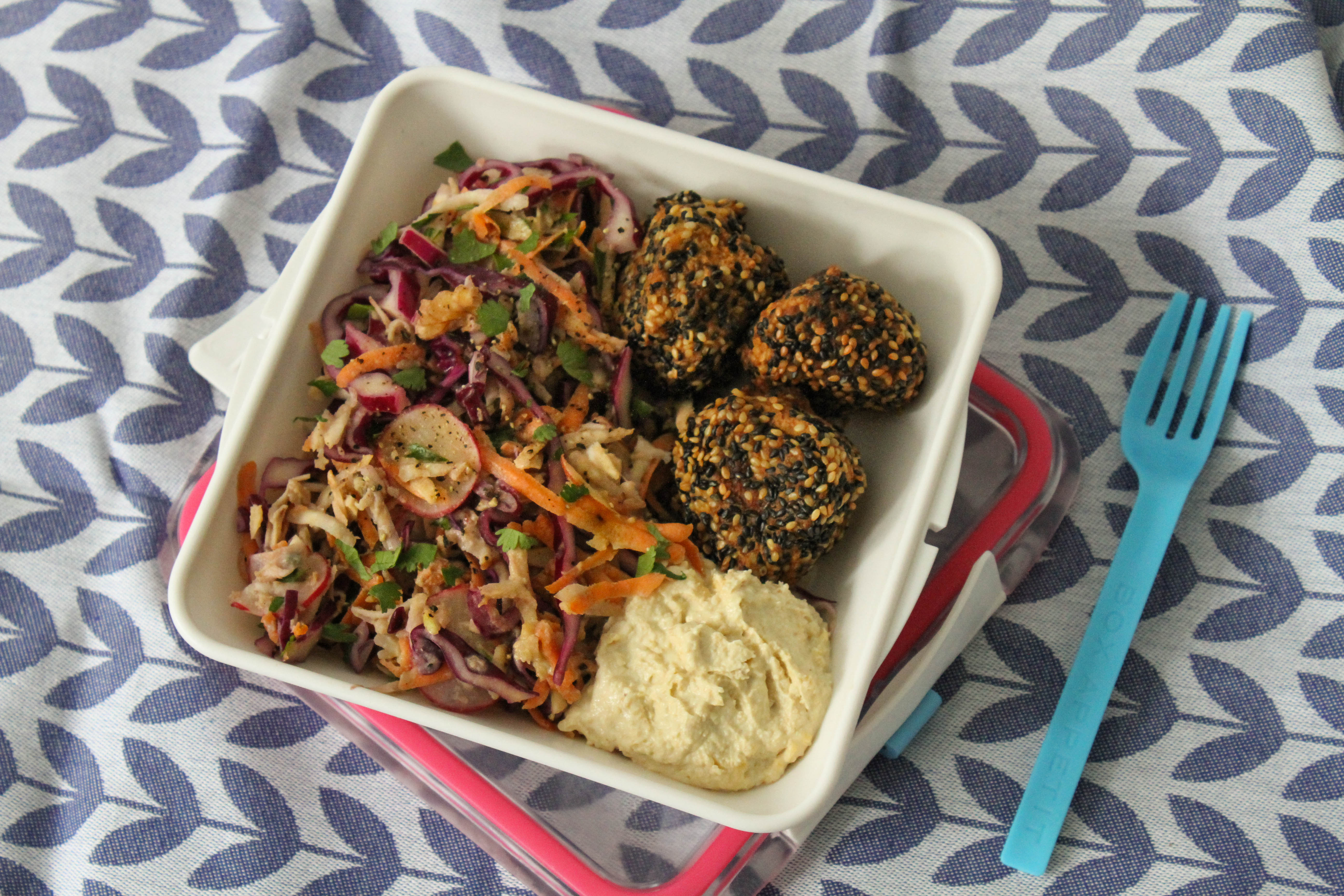 This meal is so fresh and moreish, and is packed with flavour. It works well as a lighter evening meal, but I love it most with hummus as a lunch. The falafel freeze really well, and if you make everything in bulk at the weekend it will keep you stocked for packed lunches most of the week.