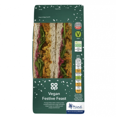- Co-op – Vegan Festive Feast, £3* (430 cals)