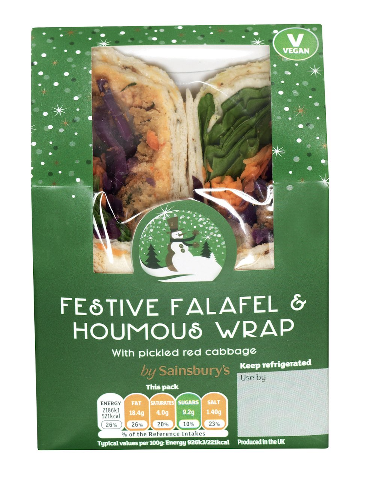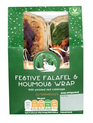 - Sainsbury’s – Festive Falafel & Houmous Wrap, £2.30 (457 cals)