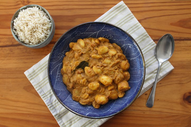 Potato and butter bean curry was always one of my favourite meals growing up – I’ve lost count of the number of times I requested it as a birthday dinner. We’d never used tinned potatoes for it until last week, but it worked so well I’d be tempted to do it in the future, even if there wasn’t a pandemic happening!
