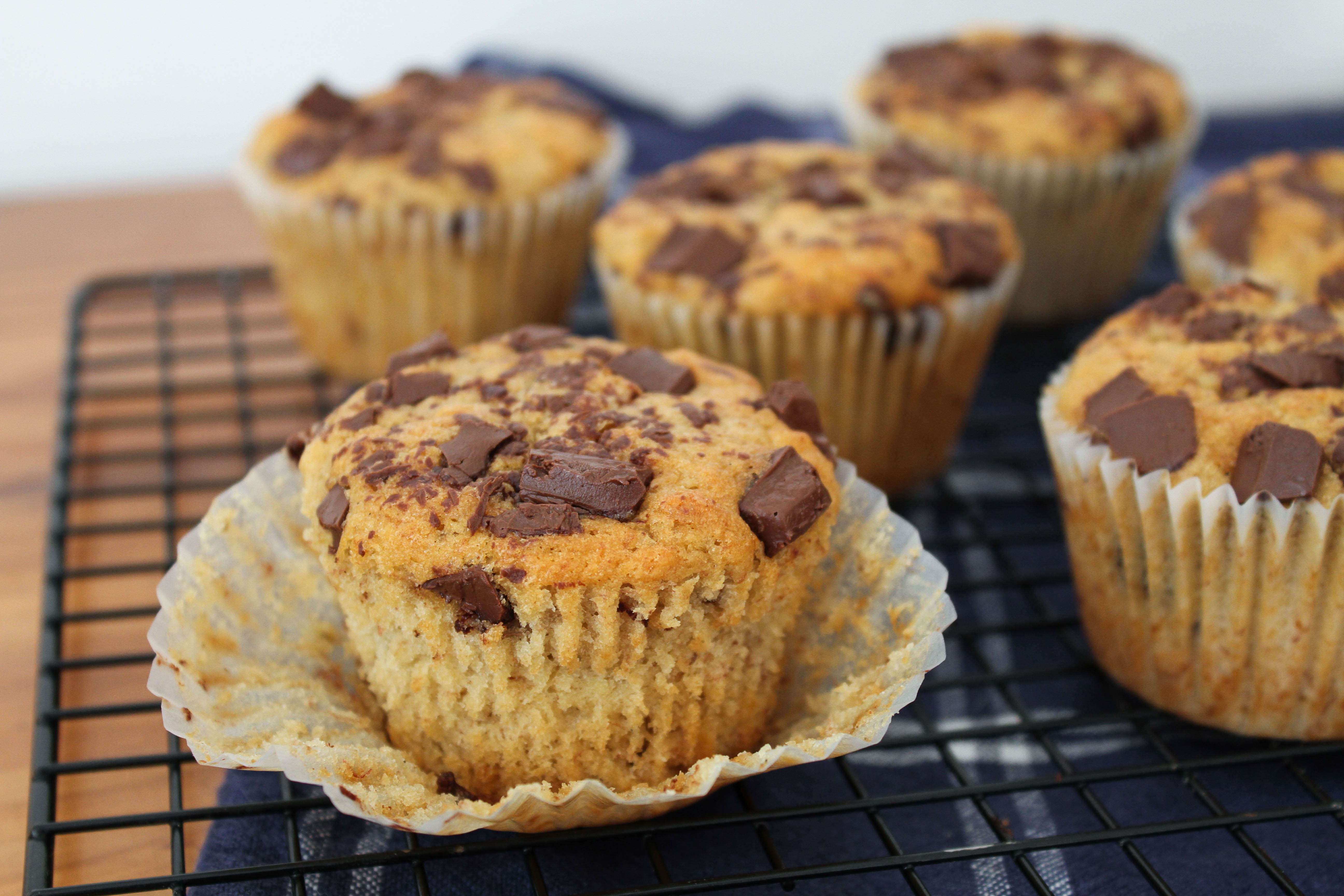 - Divide between the muffin cases and scatter with the remaining chocolate. Bake for 20-25 minutes (checking and turning the tray after 20 minutes) until golden, and a skewer inserted in the centre comes out clean.