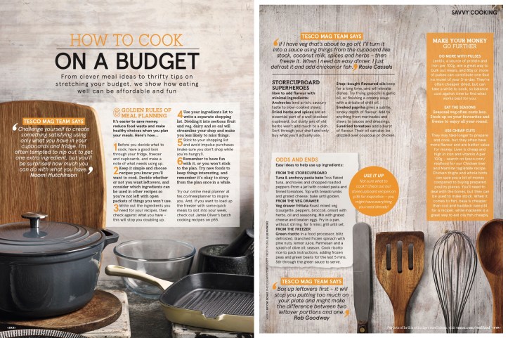 How to Cook on a Budget feature for Tesco Magazine, January 2019