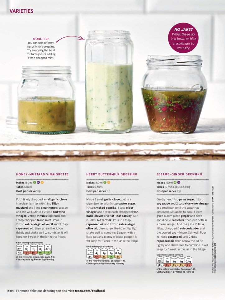 Salad dressing recipes for Tesco Magazine, July/August 2017